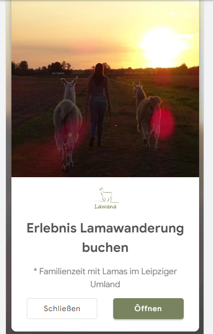 Mein Thema: "Wanderungen mit Lamas" als Basis für die Erarbeitung von Suchanzeigen, Displayanzeigen sowie Marketingkampagnen.